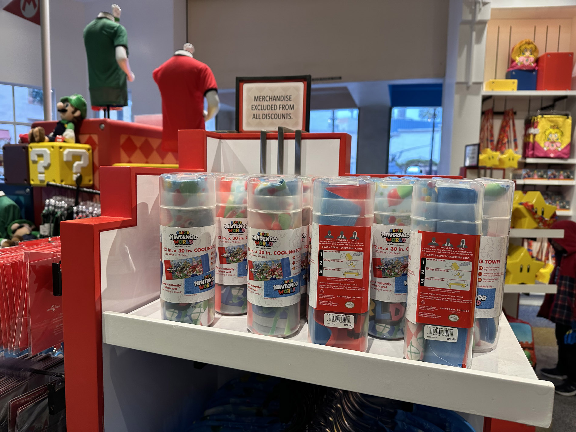 While supplies last, commemorative Grand Opening merchandise such as a pin, magnet, badge holder, poster, puzzle, and t-shirts are available for purchase wherever Super Nintendo World merchandise is being sold. There is a limit of 2 items per style, per transaction for these items.