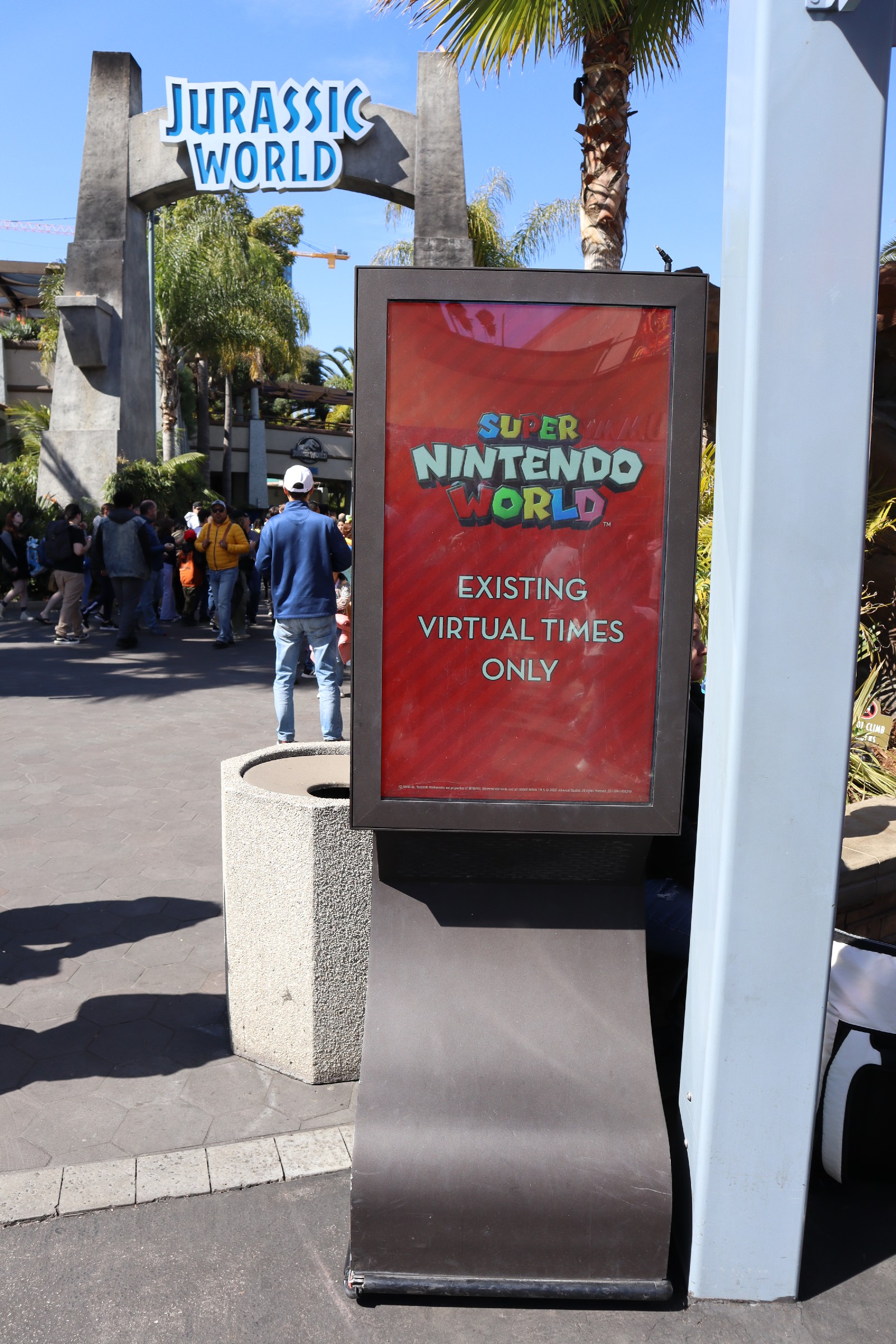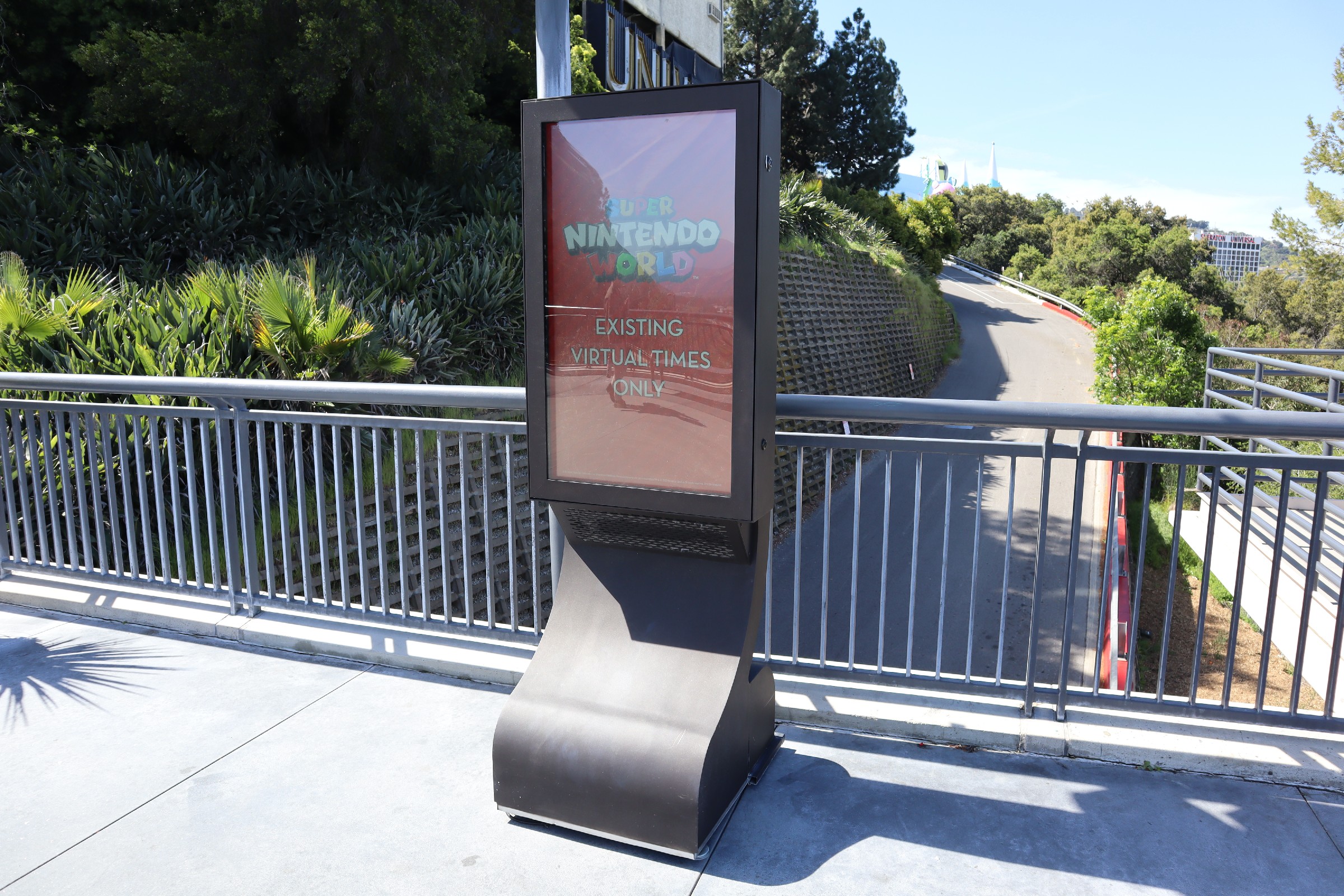 Digital signage is now located throughout the park – in front of The Wizarding World of Harry Potter, in between the Starway, and near the Jurassic World area to display Super Nintendo World entry updates.