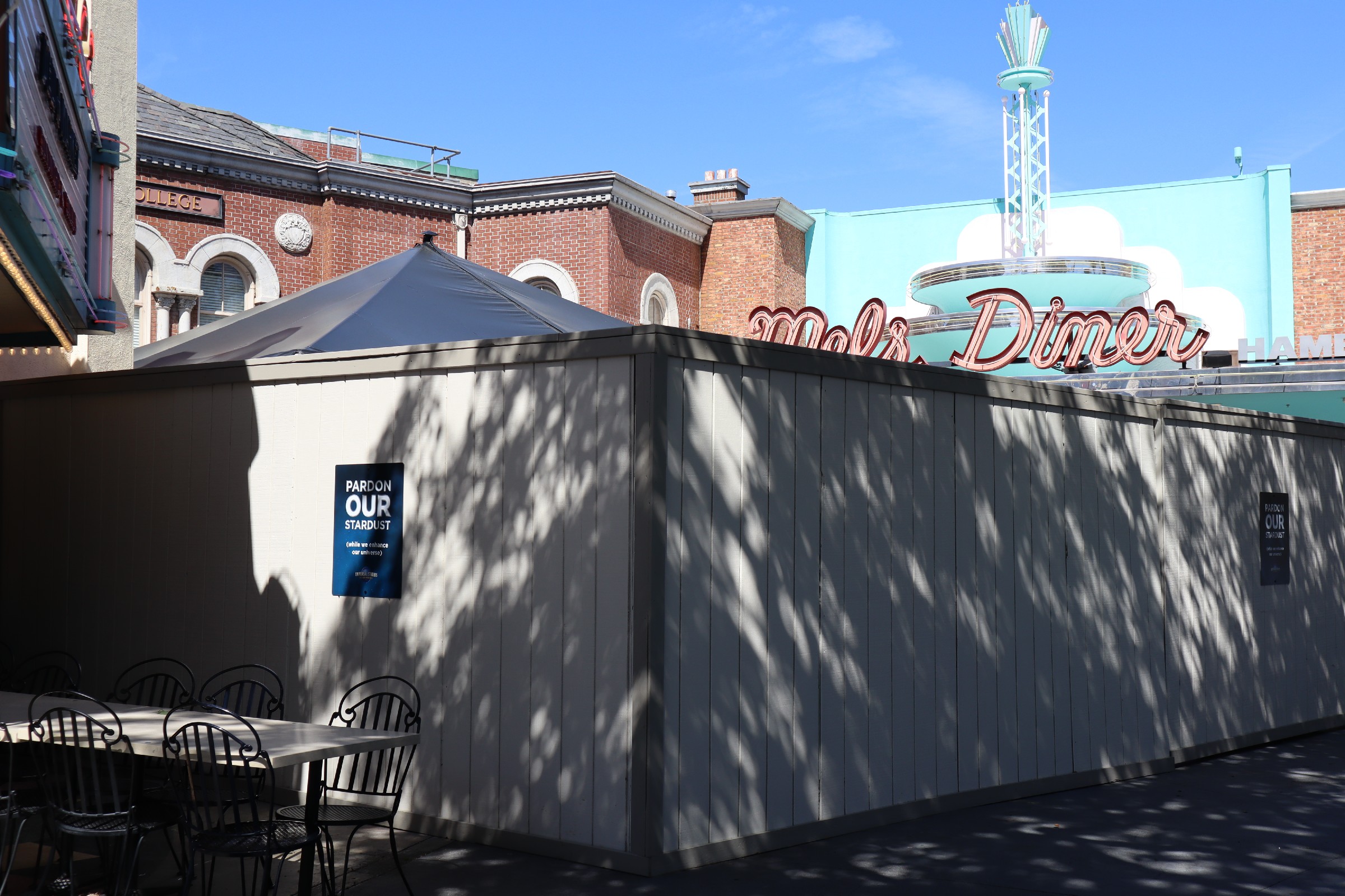 Walls have started to go up in the Parisian Courtyard and areas surrounding Mel’s Diner have also been closed off.