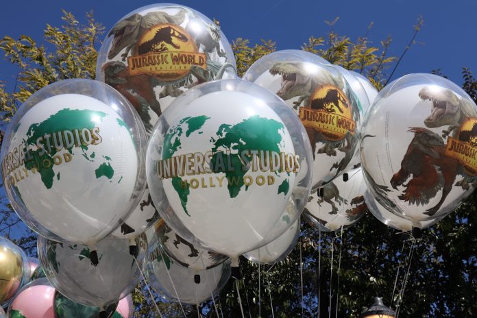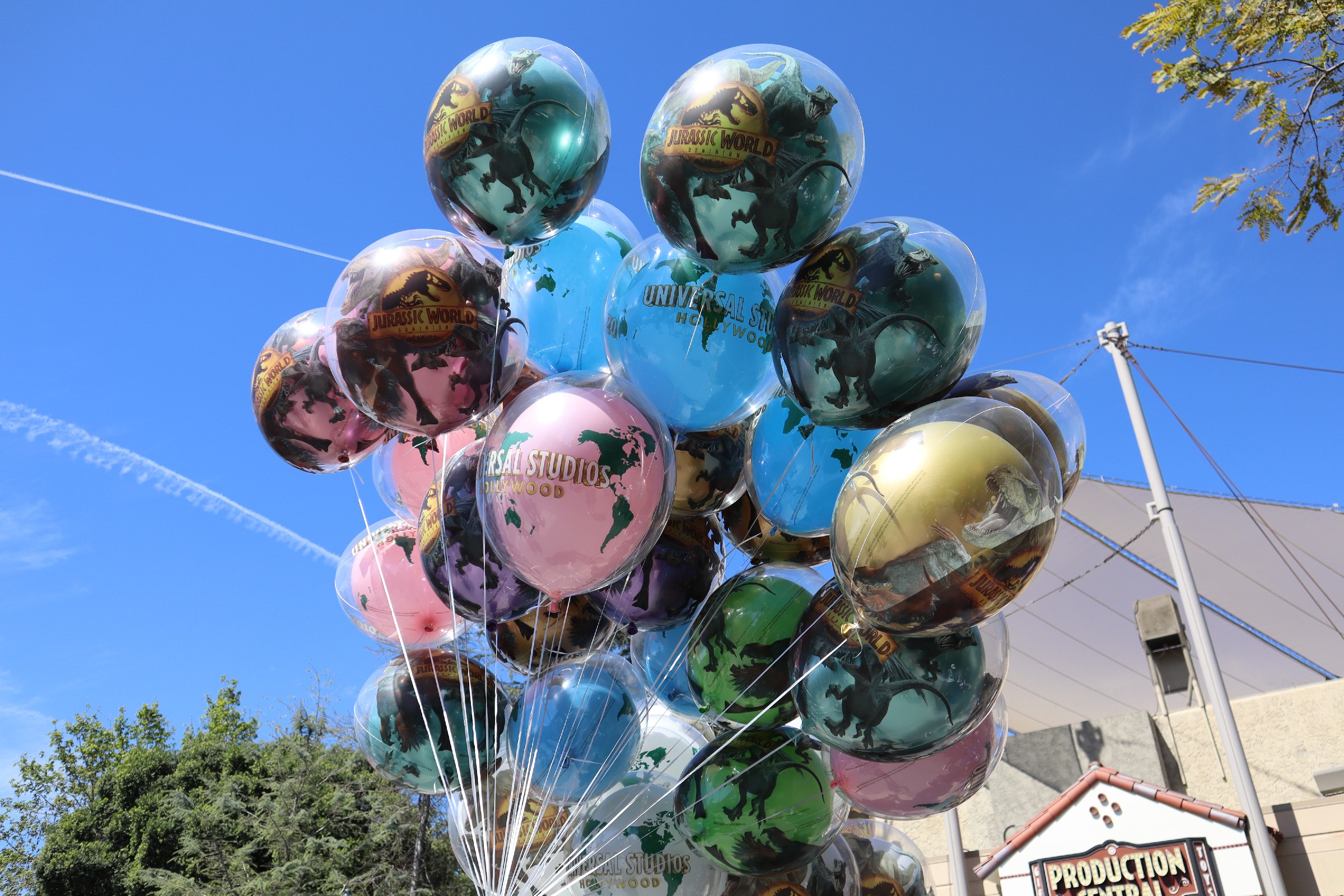 Balloons are now available for purchase at the park! There are two designs for the balloons – a Universal Studios Hollywood design and a Jurassic World Dominion design, both of which are available in a variety of colors. The white balloons will also light up.