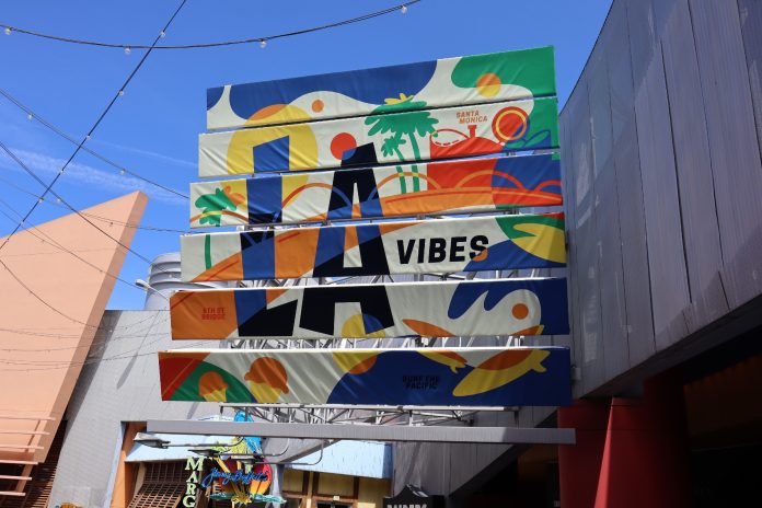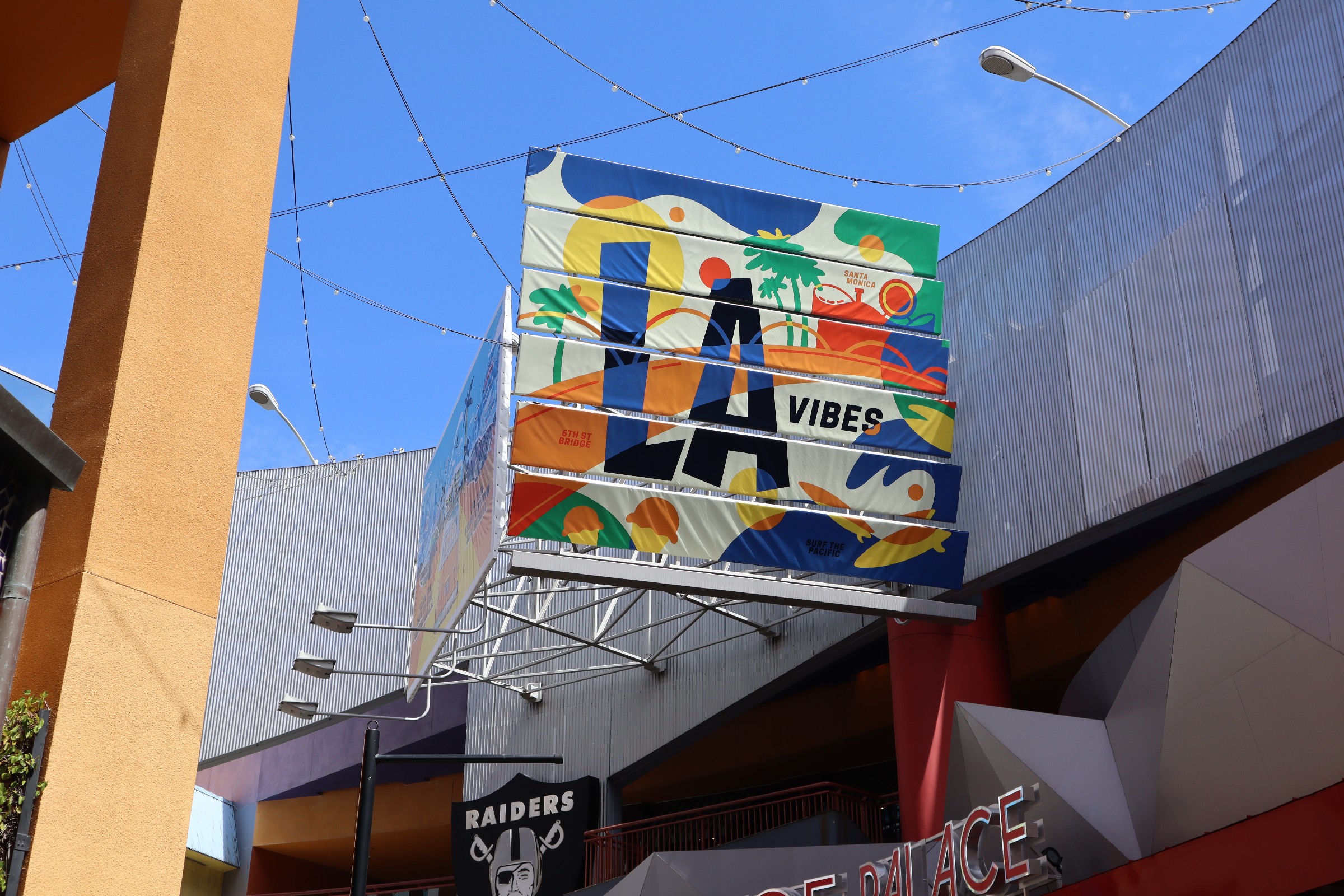 Signs showcasing and highlighting the city of LA can be seen around CityWalk.
