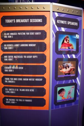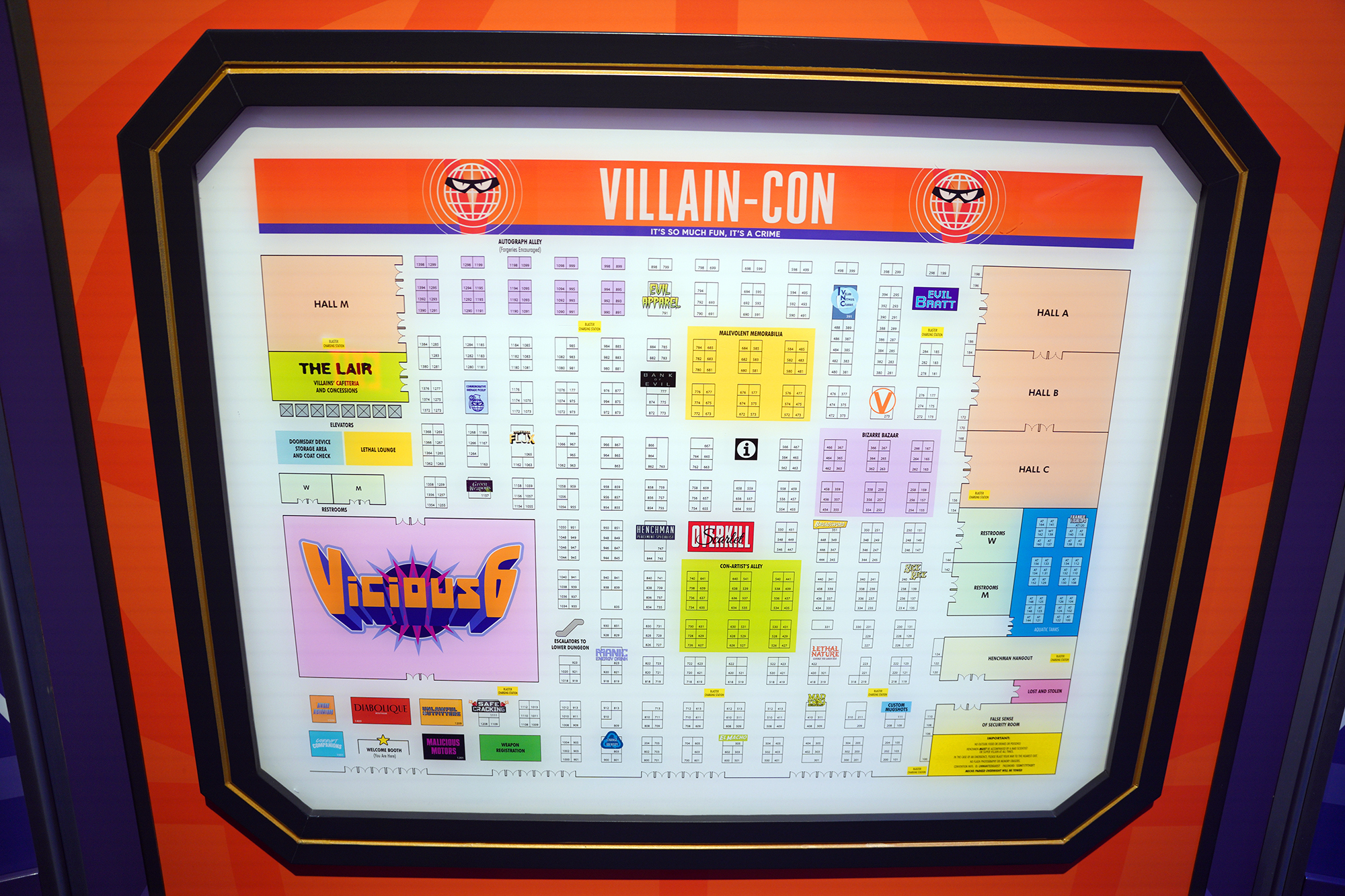 The story goes that guests are entering Villain-Con – the largest convention for villains around the globe – where the headlining event is a challenge to see who has what it takes to become the newest member of the notorious supervillain group, the Vicious 6. As guests make their way through the convention, they’ll venture through the trade show floor, stocked with the latest gadgets, vehicles, and fashion.