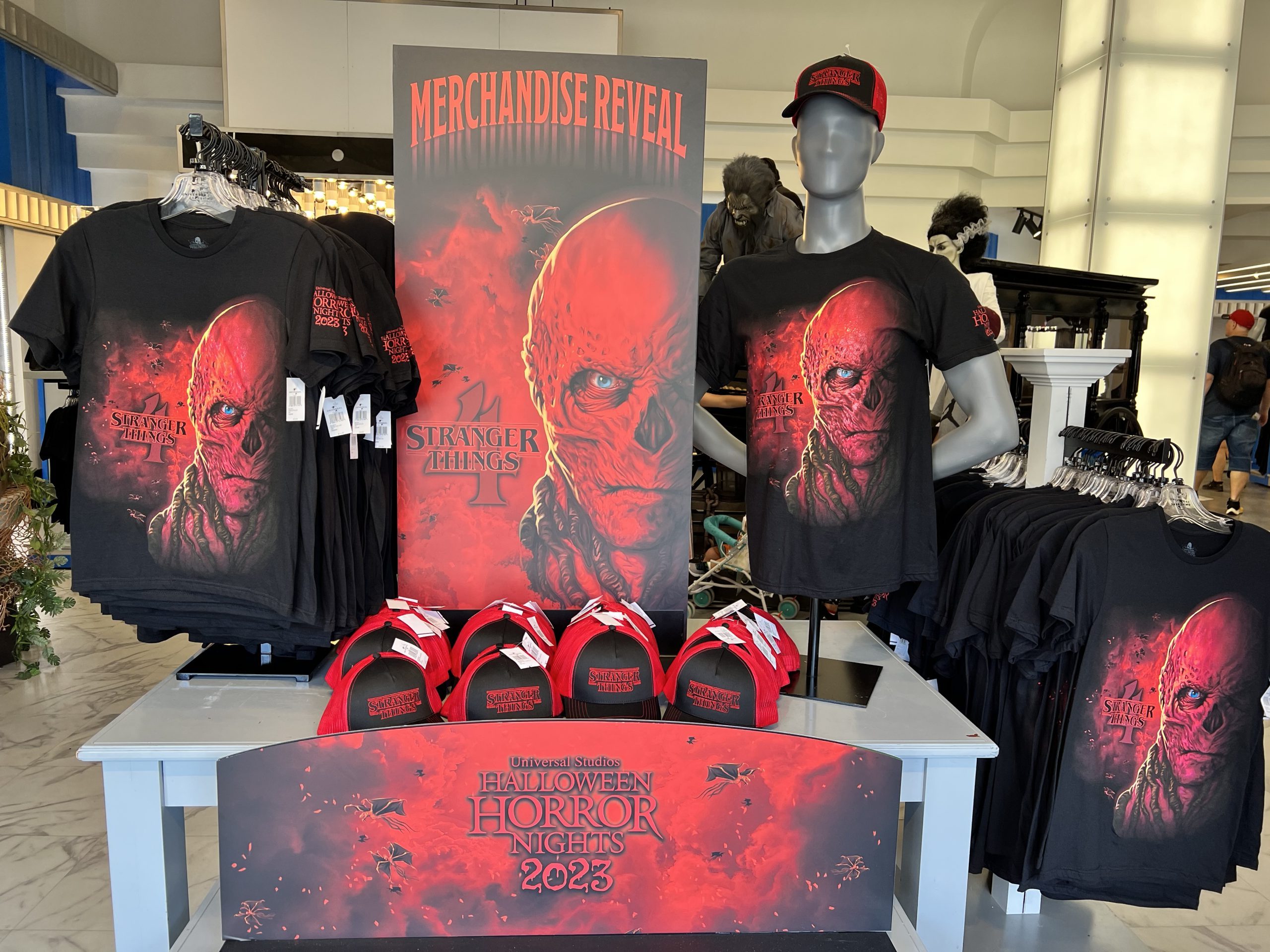 Featuring Season 4’s main villain, Vecna – guests can pick up the red & black t-shirt and hat at the 5 & Dime in Hollywood at Universal Studios Florida, or at the All Hallows’ Boutique at Islands of Adventure.