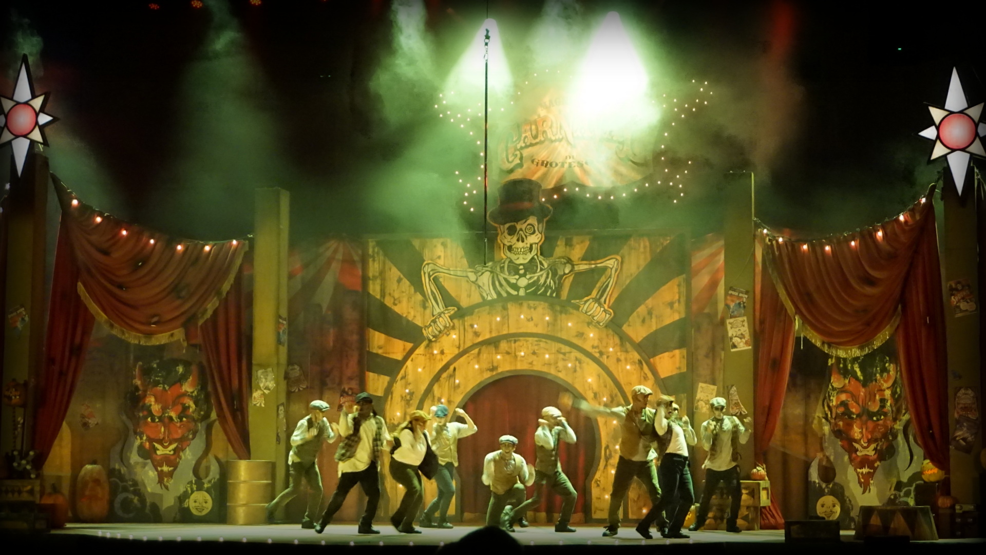 This year in the Walter Knott Theater you’ll find one of the three new shows, Music, Monsters & Mayhem. While the park lacks any specific celebrity host this year, this show would match perfectly with the Elvira shows of old. It’s the same layout, composed of well-produced musical numbers punctuated with edgy comedic bits that are not for children. Being that the 50th is all about honoring the past, all the bits feature the host of the show becoming possessed by the spirit of the previous hosts thanks to a curse from the Green Witch. It works well, with a slight explanation of each character so newer folks aren’t confused. The musical acts are great. Each one alludes to the park’s history, be it Ghost Town as a whole or a former maze like Doll Factory. Every performer gives it their all. I missed these big numbers over the last few years, so it’s good to have it back. The only minor complaint is that because of the history the show needs to cover, it runs over 30 minutes, and that can mess with the schedules of folks assuming it’s a typical 20-minute affair.