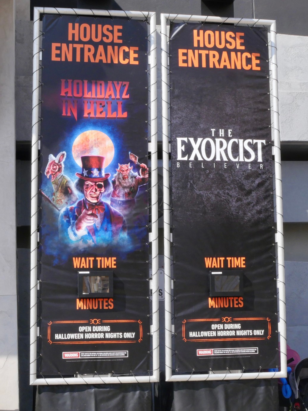Wait time display is up for the special experience: Blumhouse — Behind the Screams, in the Dreamworks theater.