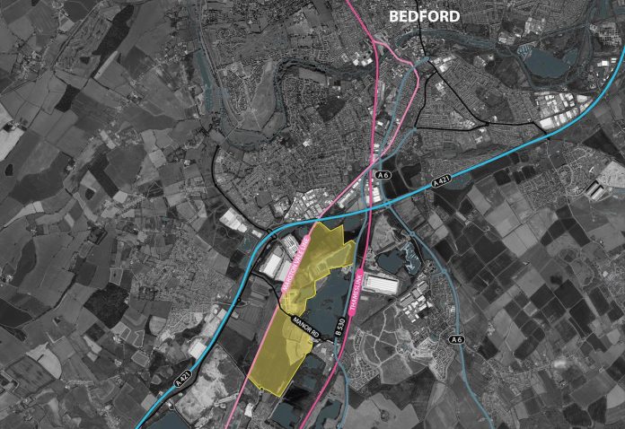 The land purchased is located in Bedford, England, which is about 60 miles outside of London.