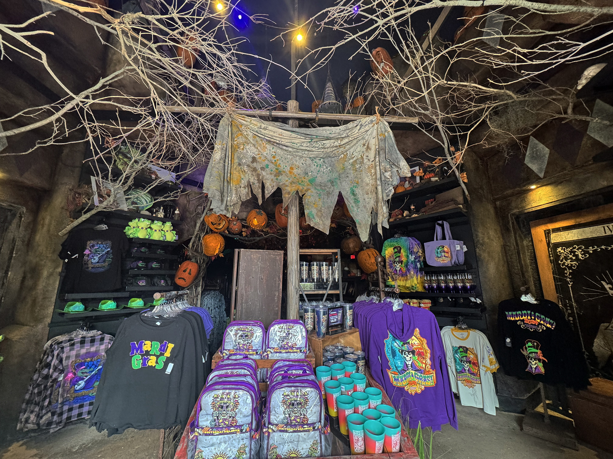 Universal Orlando has transitioned the All Hallows’ Eve Boutique in Islands of Adventure to become the “Bayou Boutique” for this year’s Mardi Gras – featuring much of the event’s merchandise.