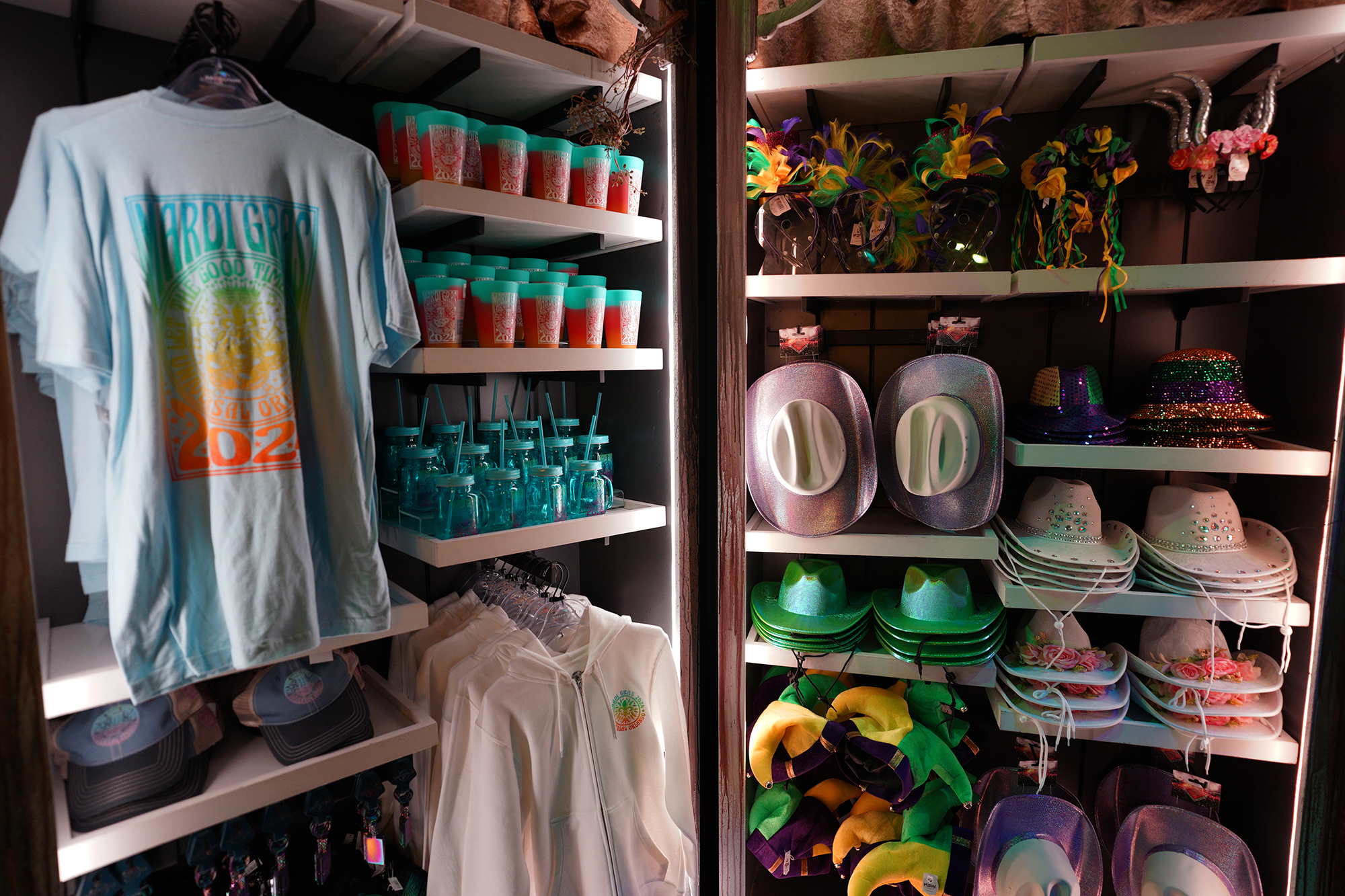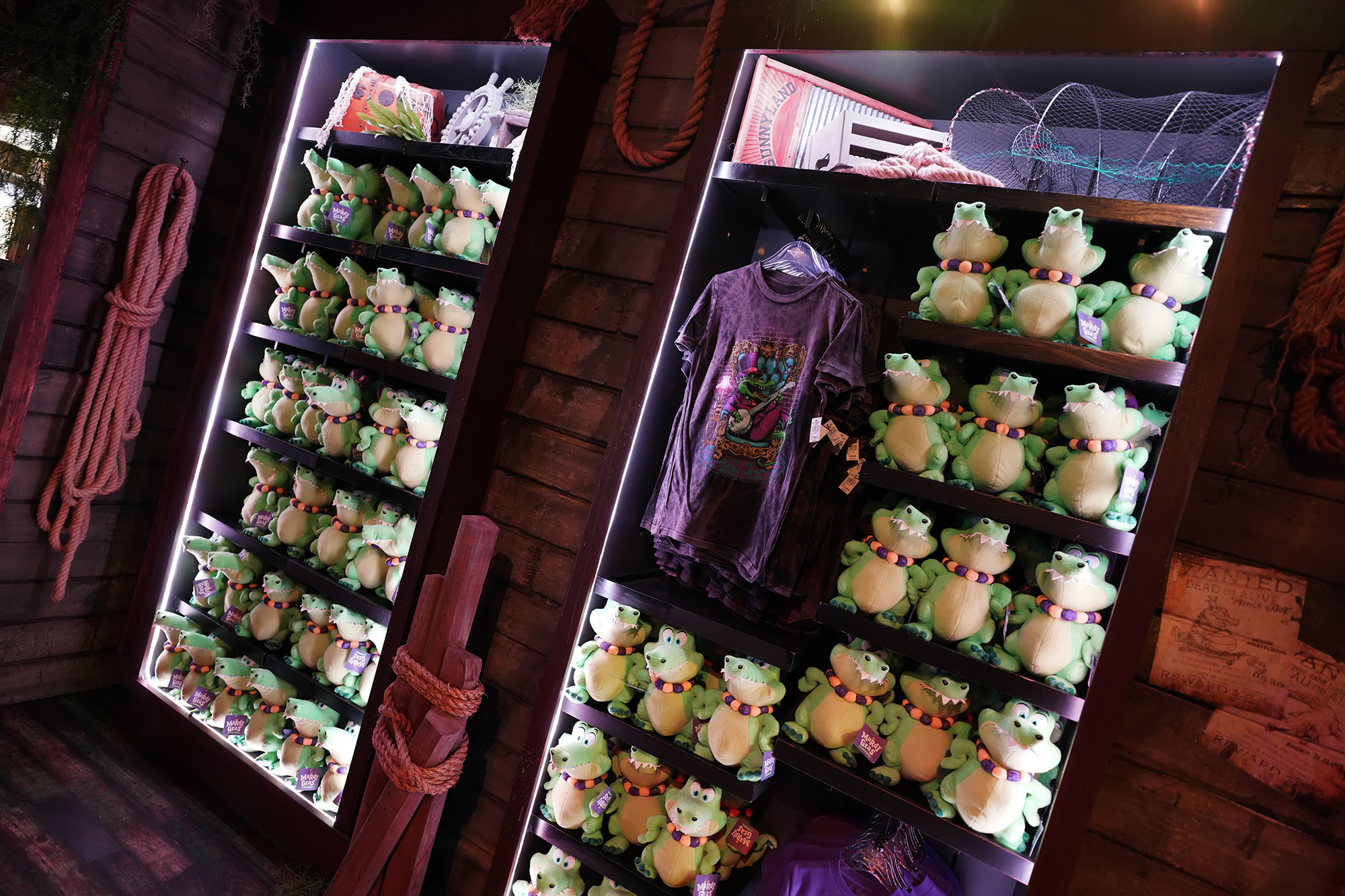 The highly-themed store takes guests on a haunted river cruise through the Mississippi complete with beads, treats and a gator or two. Here, guests can shop for ultra-festive Mardi Gras merchandise to commemorate their visit – ranging from t-shirts, jean jackets and hoodies to bucket hats, cups and a gator light-up popcorn bucket