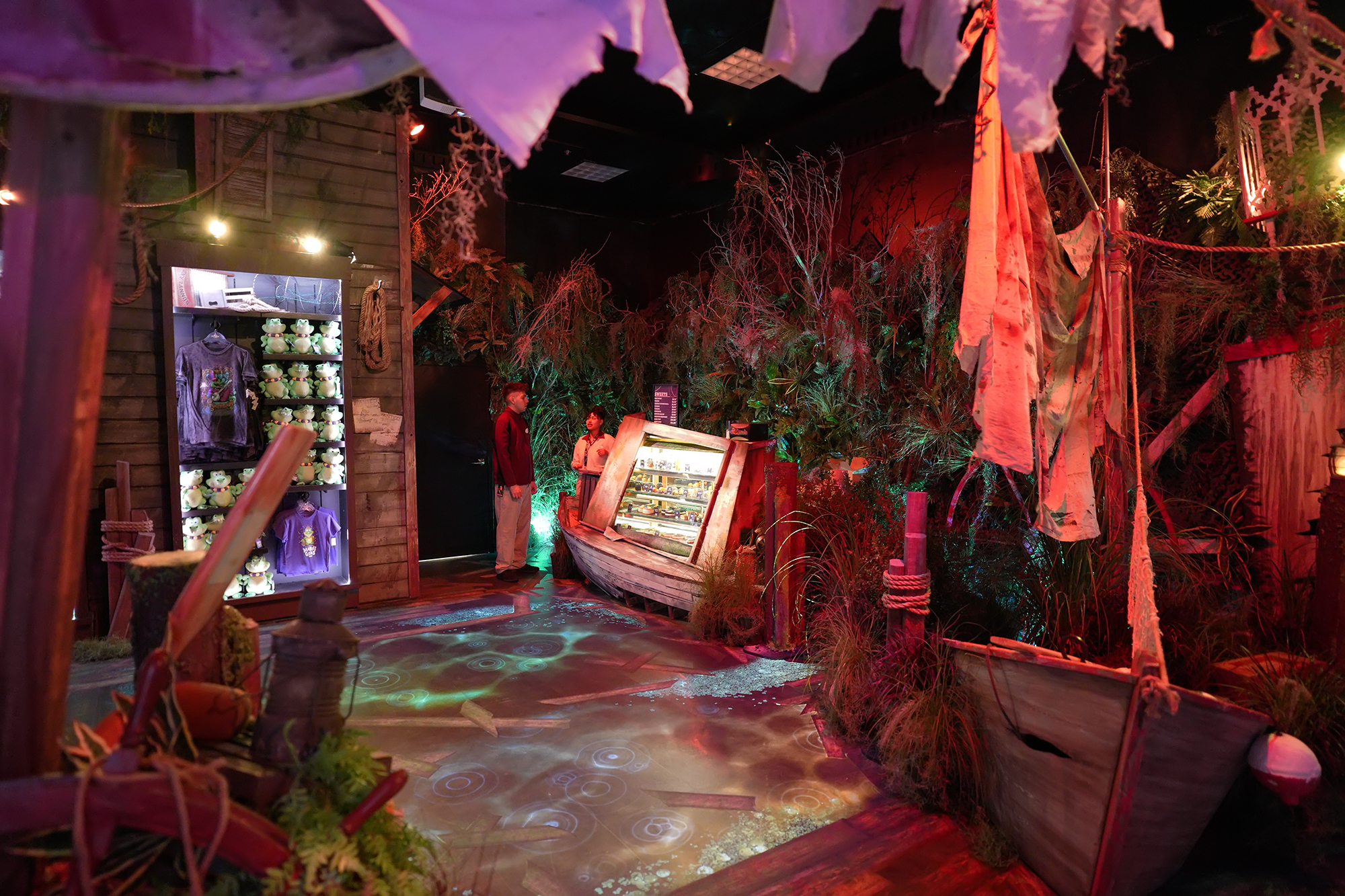 The Tribute Store features 4 different rooms – first welcoming guests aboard the fictional steamer, The P.S. Songbird. As guests make their way through the ship, they’ll encounter ghostly apparitions. Guests will eventually find themselves deep in the heart of the bayou before ending up in Baron TonTon’s quarters.