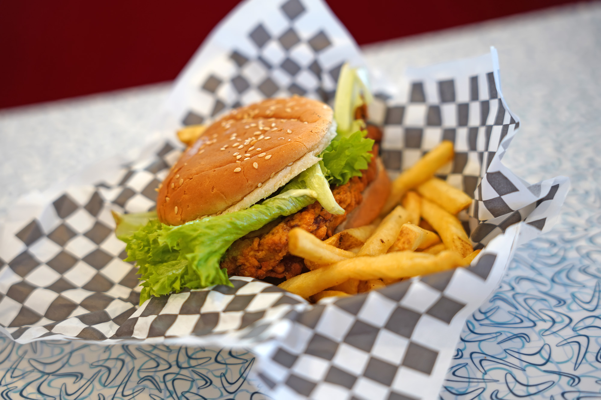 The menu is pretty straightforward, which isn’t a knock, as you’d expect these dishes at a classic diner – so if you’re looking for a quick & simple, no-frills menu during your Universal visit, Mel’s is the spot for you. During our visit, we opted for the Big Bopper Burger, Crispy Chicken Sandwich, and the Chili Cheese Hot Dog.