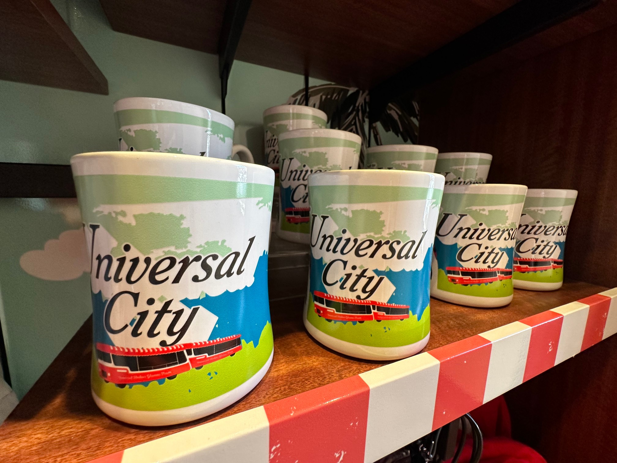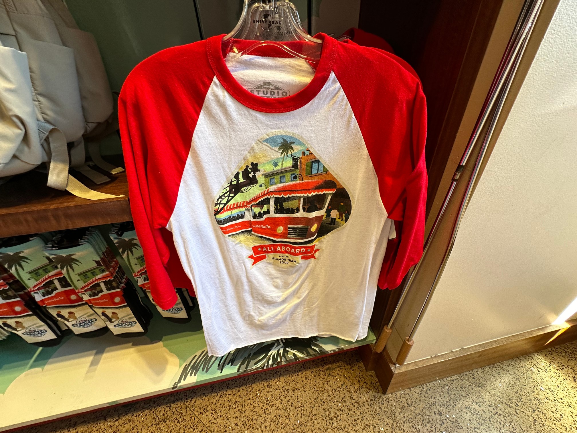 The merchandise includes retro-themed souvenirs, including a Glamor Tram-themed pillow, blanket, backpack, jacket, tops, tees, hats, mugs, glassware, lanyards, and more.