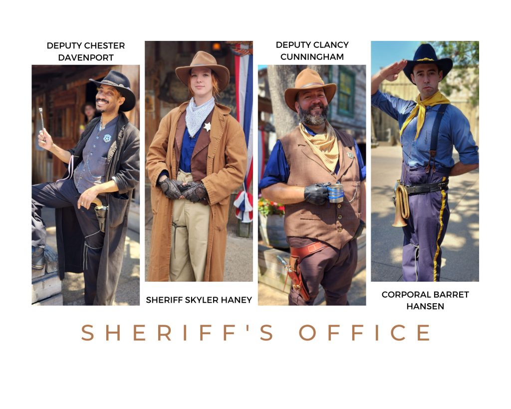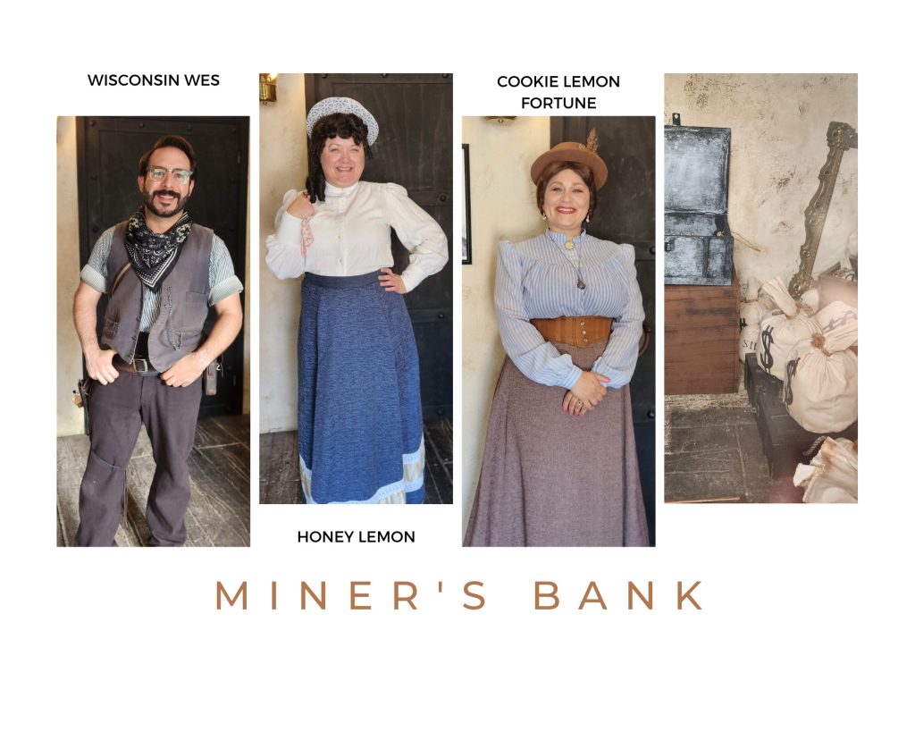 The Assay Office is right at the front of Main Street, and the first place almost all guests will see. Inside, Cody and Flint are back again this year, and Ophelia returns from spending quite a few years away. You’ll come around here to get your gold weighed and appraised.