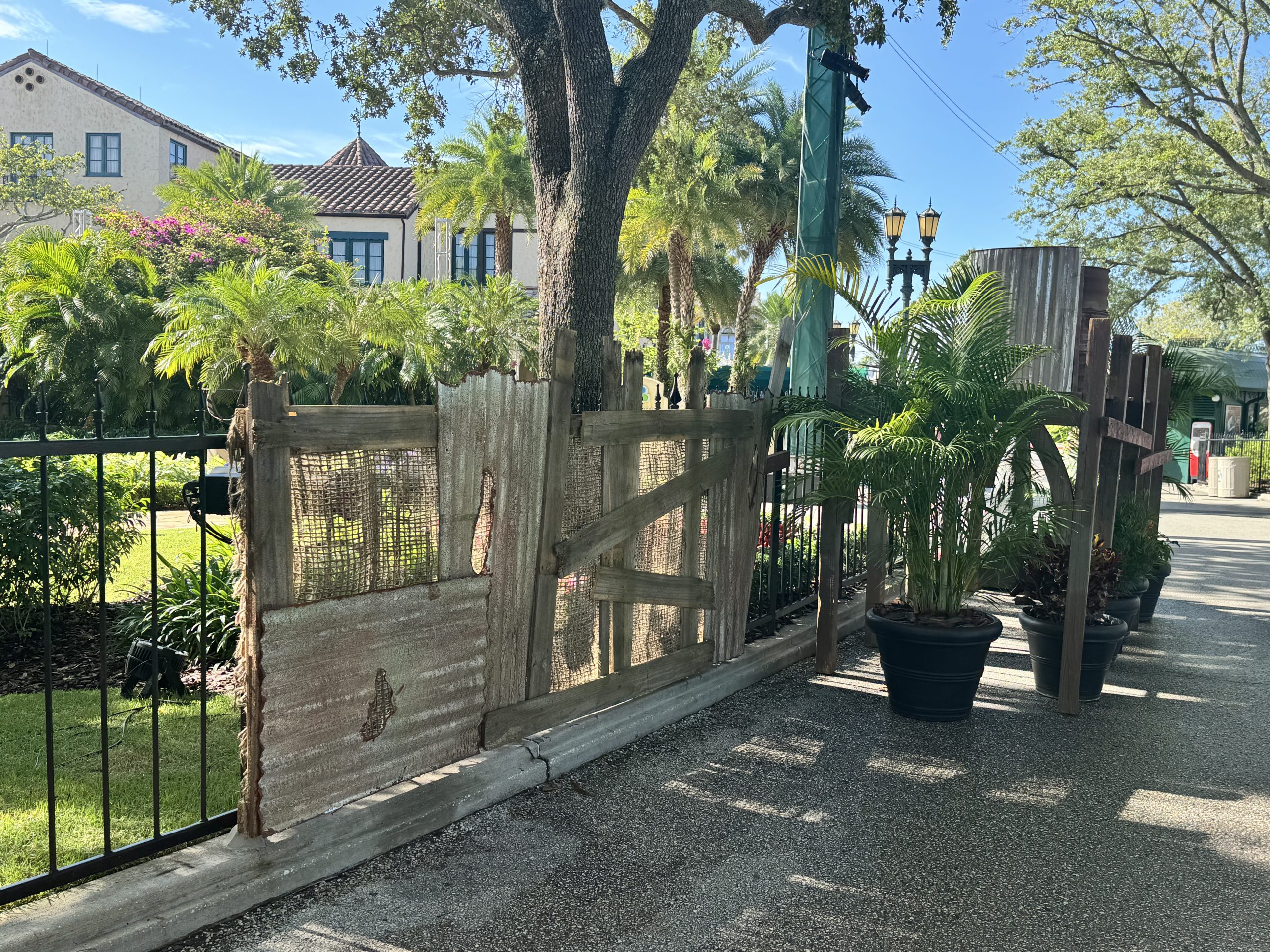 Swamp of the Undead props now has appeared throughout Central Park, featuring an assortment of wooden docks, plants, “sunken” canoes, and corrugated metals. Lighting has been installed on towers and at ground level, suggesting that there will be a lot of backlit props and fences during the event.