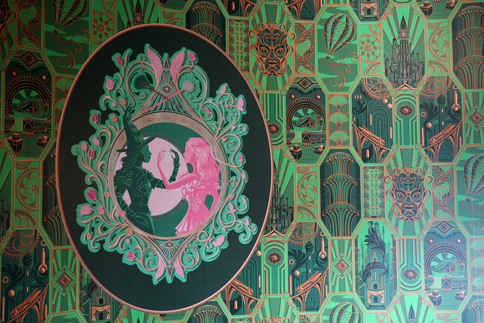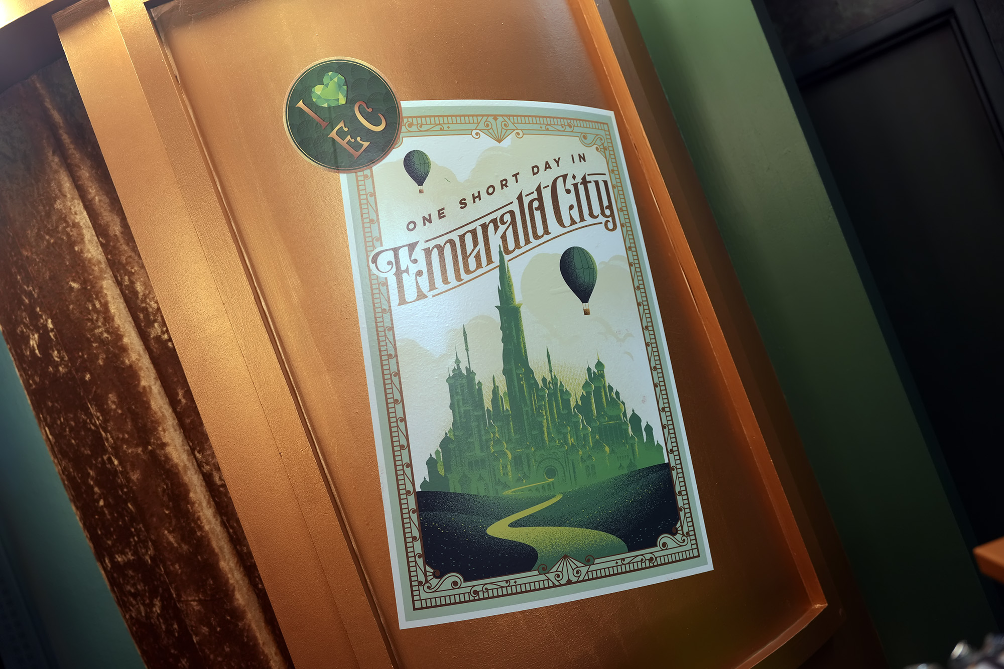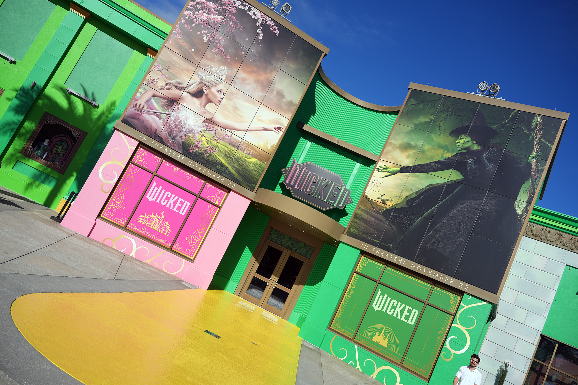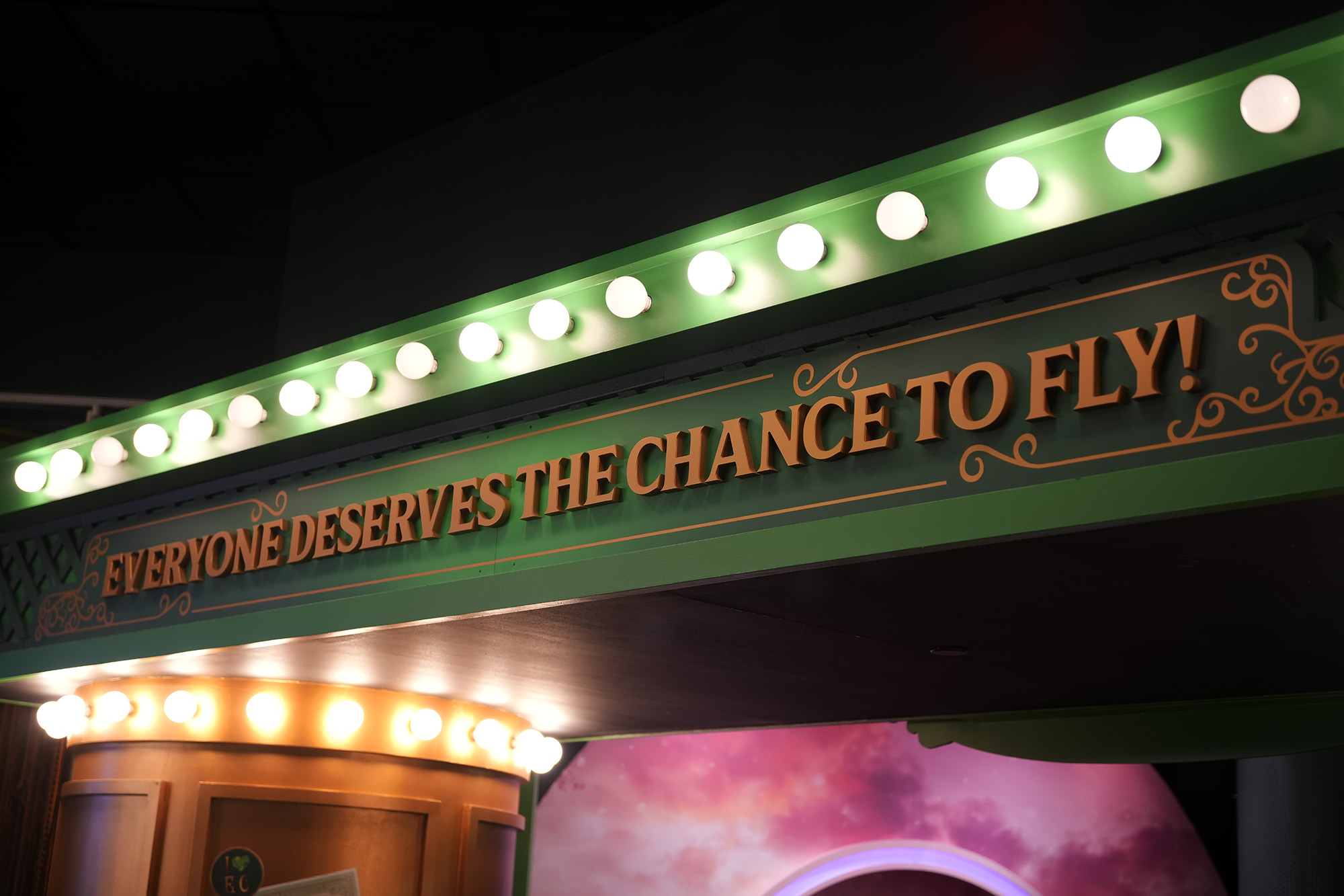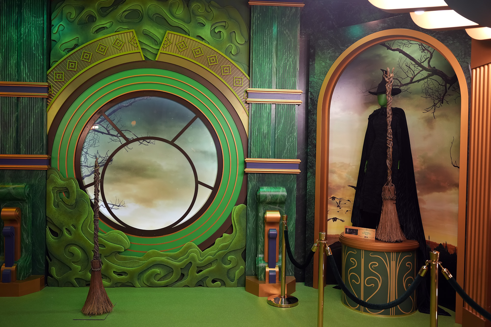 Located inside Universal Studios Florida, guests can “follow the yellow brick road” into the experience. It features rooms dedicated to iconic locations from Wicked, such as Shiz University and the Emerald City. Guests will find costume and prop replicas created by the film’s designers, along with photo opportunities – including Glinda’s Bubble Pink dress and wand, and Elphaba’s “Defying Gravity” dress alongside a broom photo op.