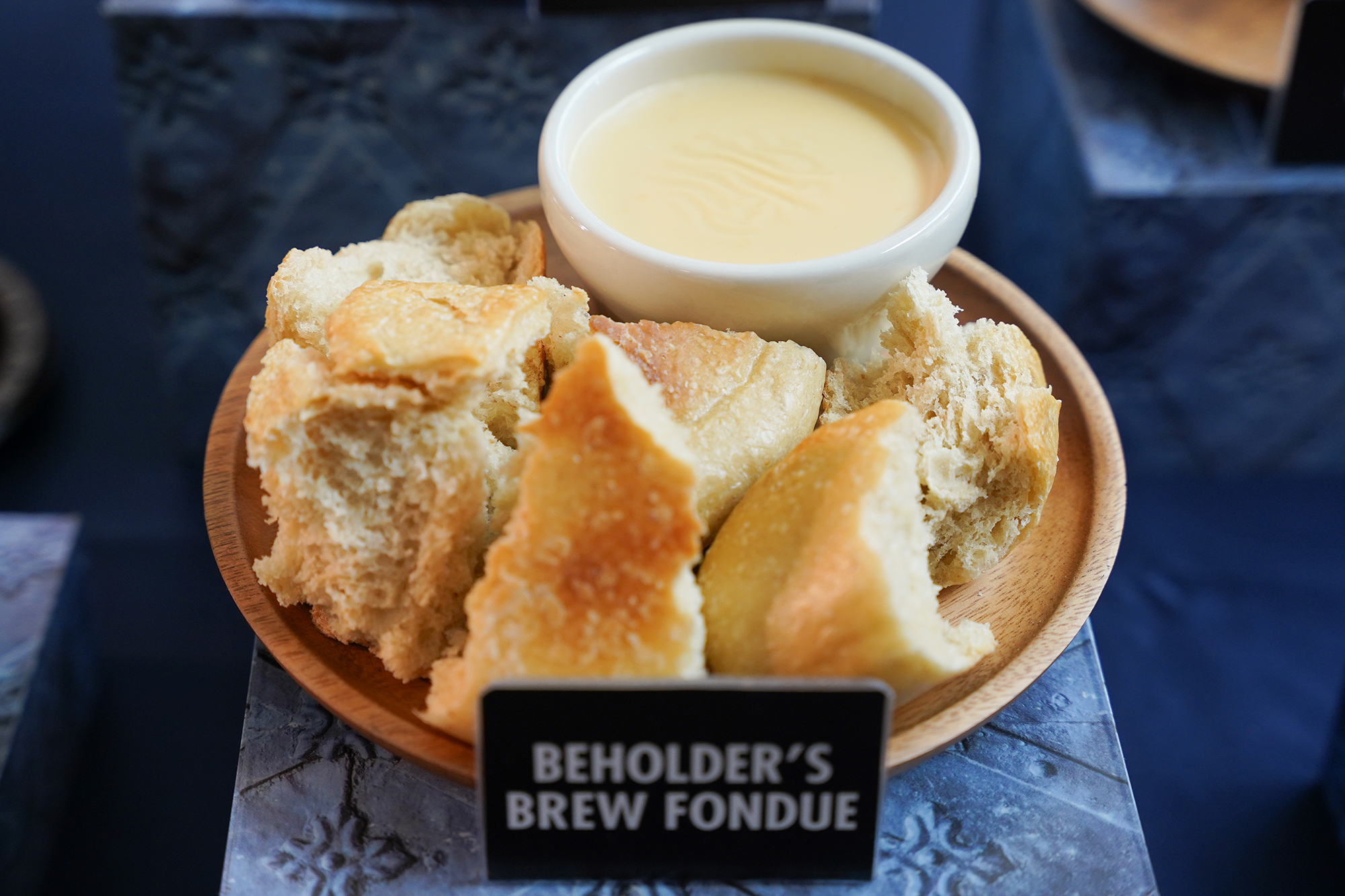 As part of our sneak preview of Universal Fan Fest Nights, Inside Universal was also invited to sample a variety of the themed foods that will be available for purchase at the event. While we will provide a more in-depth review of everything we sampled in a future podcast episode, some of our notable favorites were the Beholder’s Brew Fondue – a delicious cheese fondue paired with sourdough bread – as well as Franky’s Cola Barbacoa – barbacoa meat served with pickled onion and star-shaped pineapple bites in a tortilla.