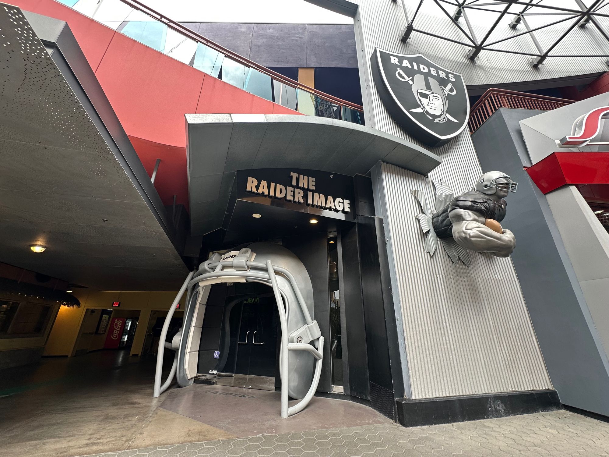 The store offered merchandise for the NFL team, the Las Vegas Raiders, which previously played in the Los Angeles and Oakland areas before relocating to Las Vegas for the 2020 season.